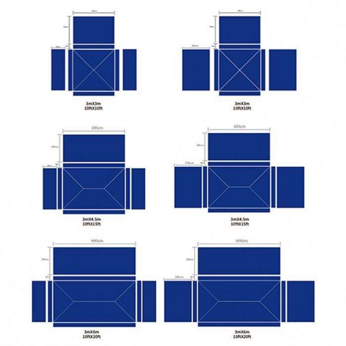 3*3m (10x10 pies); 3*4.5m (10x15 pies); 3*6m (10x20 pies)