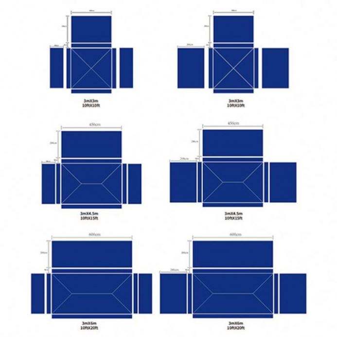 3*3m (10x10 pies); 3*4.5m (10x15 pies); 3*6m (10x20 pies)