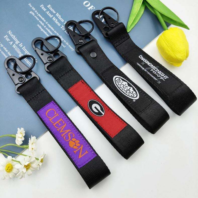 Llavero Mosquetón Promocional Personalizado de Nylon/Poliéster con Aleación de Zinc, Cordón para Moto, Coche, Avión, Color Pantone, Portátil