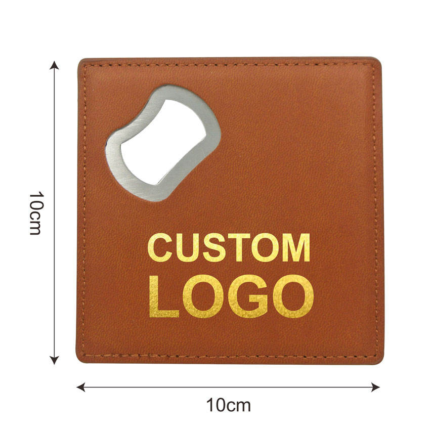 Artículo:Logotipo personalizado promocional posavasos de cuero en relieve con abrebotellas