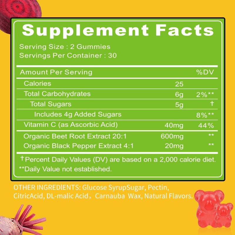 Suplemento sanitario de gomitas de raíz de remolacha personalizado promocional para mejora inmunológica y energía saludable