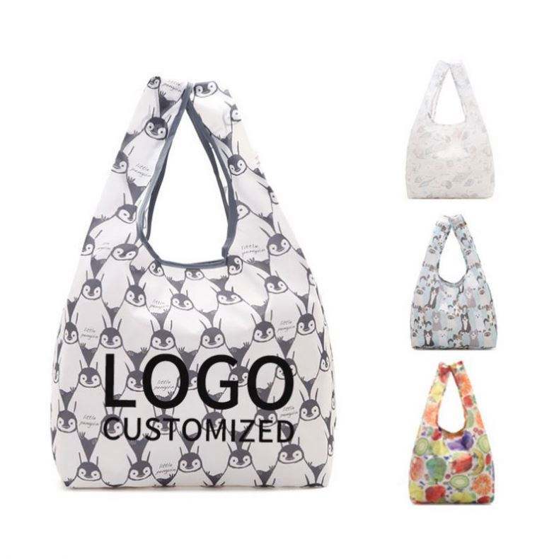 Bolsa de Mano Promocional Personalizada, Reutilizable, Plegable, Impermeable y Ecológica, con Cierre de Cremallera y Bolsillo Interior, de Poliéster 190T para la Espalda