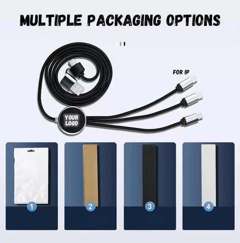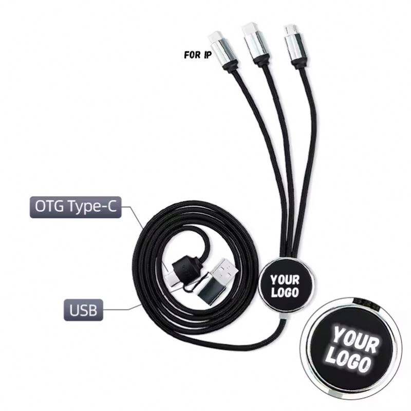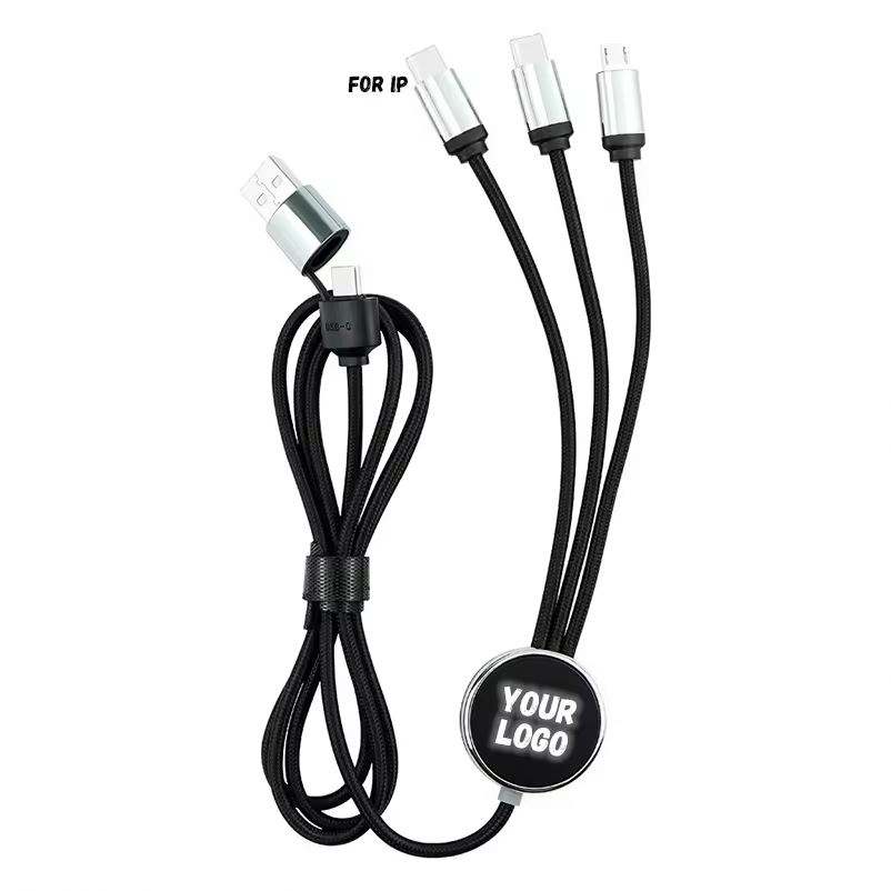 Cable de Carga LED 3 en 1 con Logotipo Personalizado, Iluminación USB para Múltiples Dispositivos, Regalo Promocional