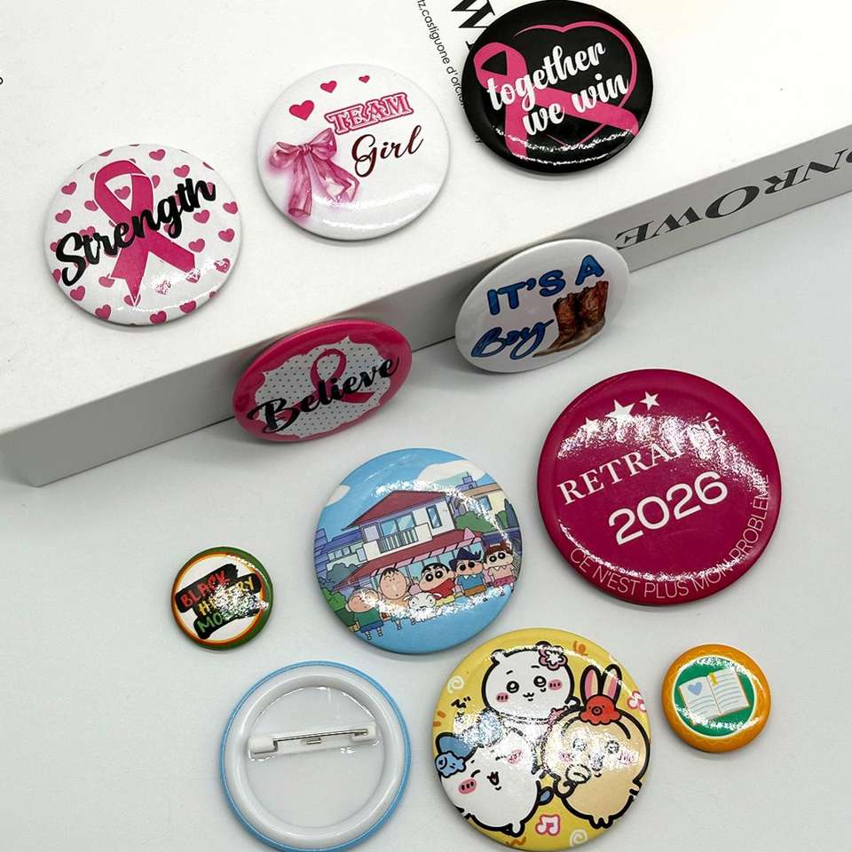 Pin Promocional Personalizado con Logotipo, Reflectante, Sublimado, Botón de Metal en Blanco para Impresión de Logotipos