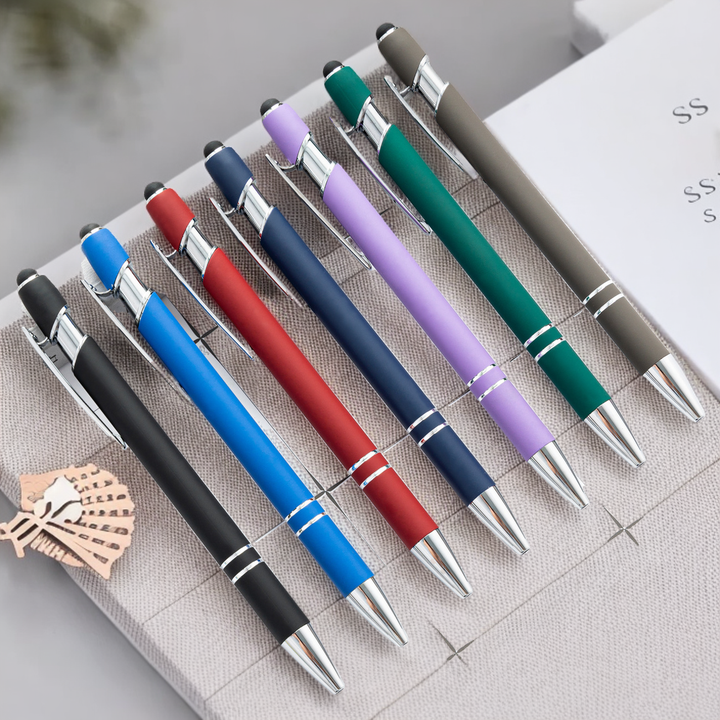 Regalos promocionales Multicolor Precio barato Aluminio Stylus Pen Metal Oficina Uso Bolígrafos retráctiles personalizados con logotipo