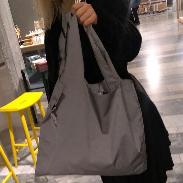 Bolsa de compras reflectante de alta visibilidad promocional con bolsillo Bolsa de compras con cordón Impresión de seda o transferencia de calor plegable