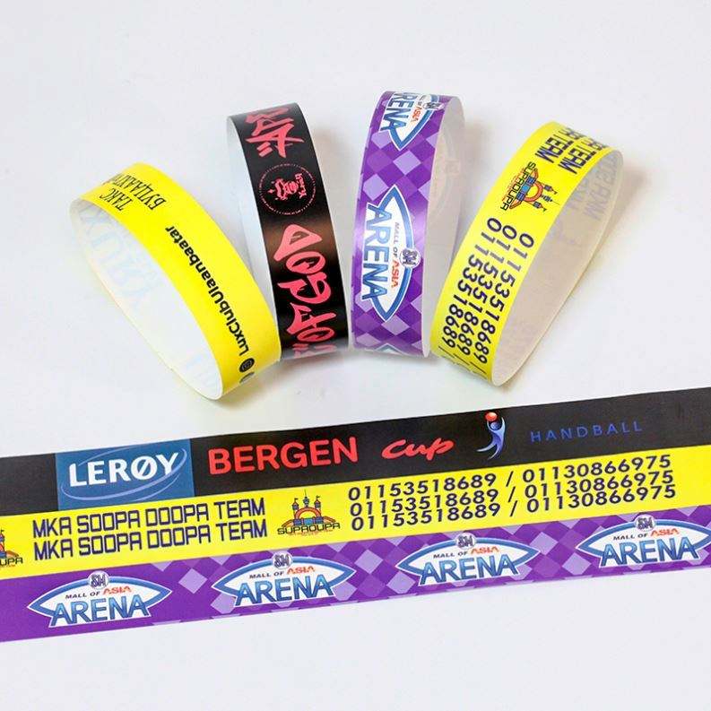 Pulsera de Papel Promocional de Color Sólido Imprimible, Resistente a Desgarros, Pulseras de Papel Impermeables con Logotipo Personalizado