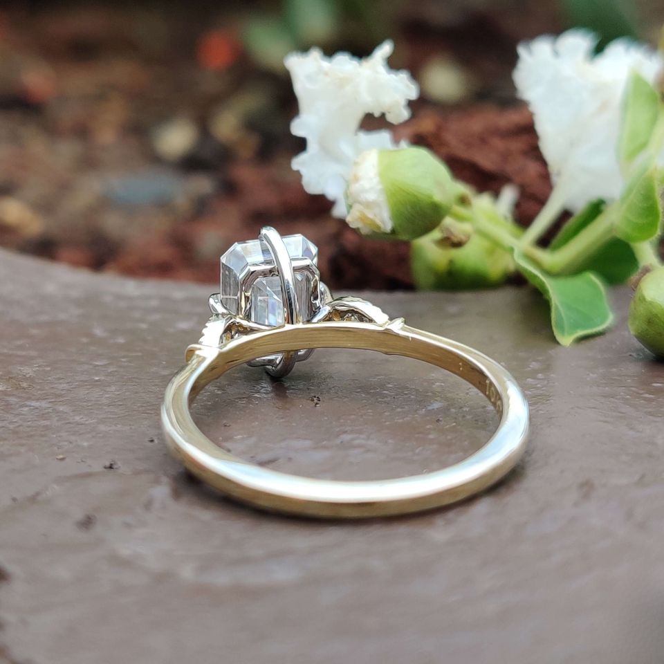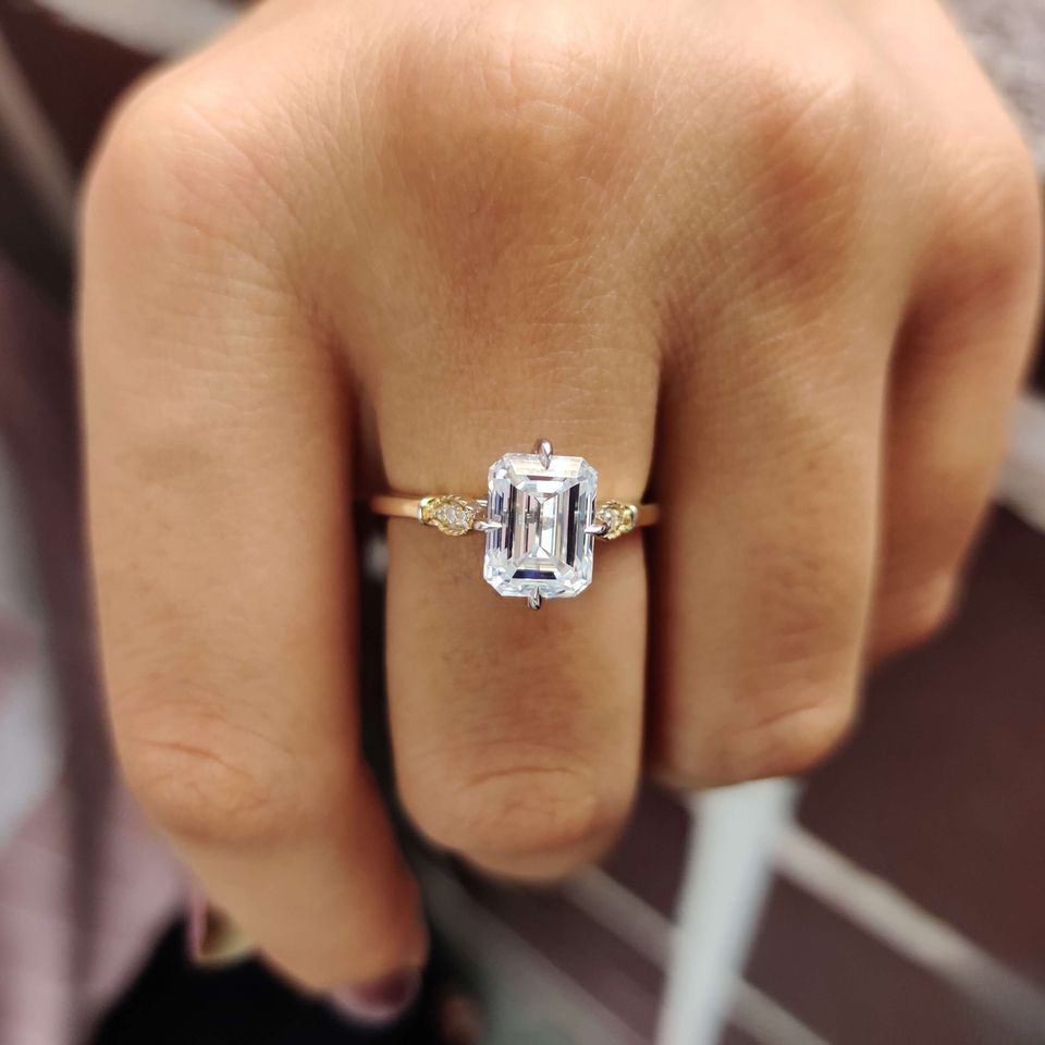 Prong Set Emerald Cut Lab Grown Diamond Engagement Wedding Rings for Women in 10kt Solid Gold