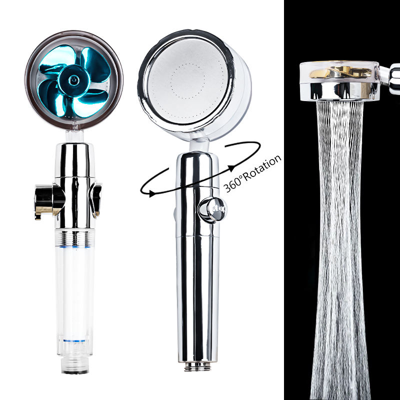 Cabezal de ducha con hélice, ahorro de agua, flujo giratorio de 360 grados con ventilador, boquilla de pulverización de alta presión ABS, accesorios de baño