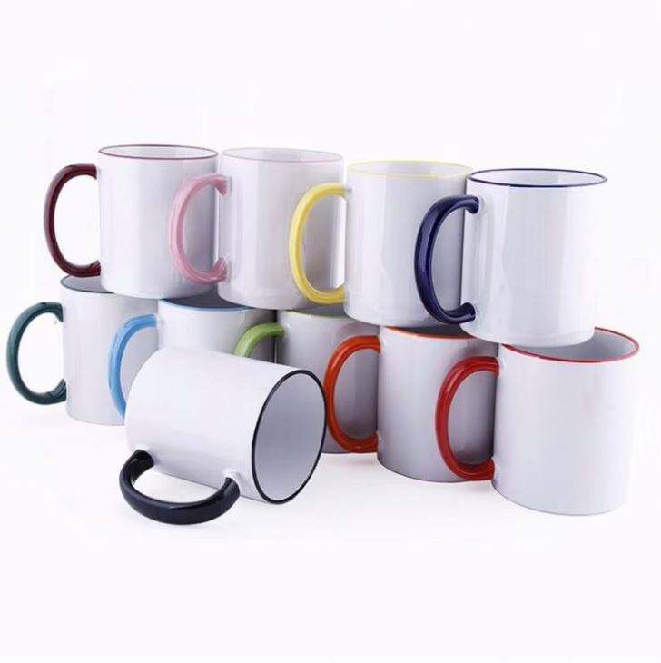 Prosub - Taza de Cerámica Sublimable al por Mayor, 11 oz, con Borde de Color, para Impresión Personalizada, con Asa