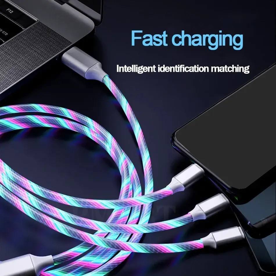 Proteger la batería del teléfono Accesorio multifunción Línea DE DATOS 3 en 1 Cable cargador USB LED
