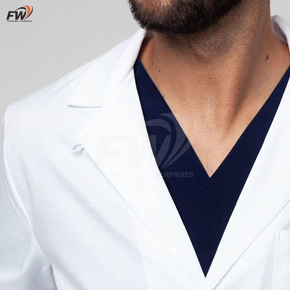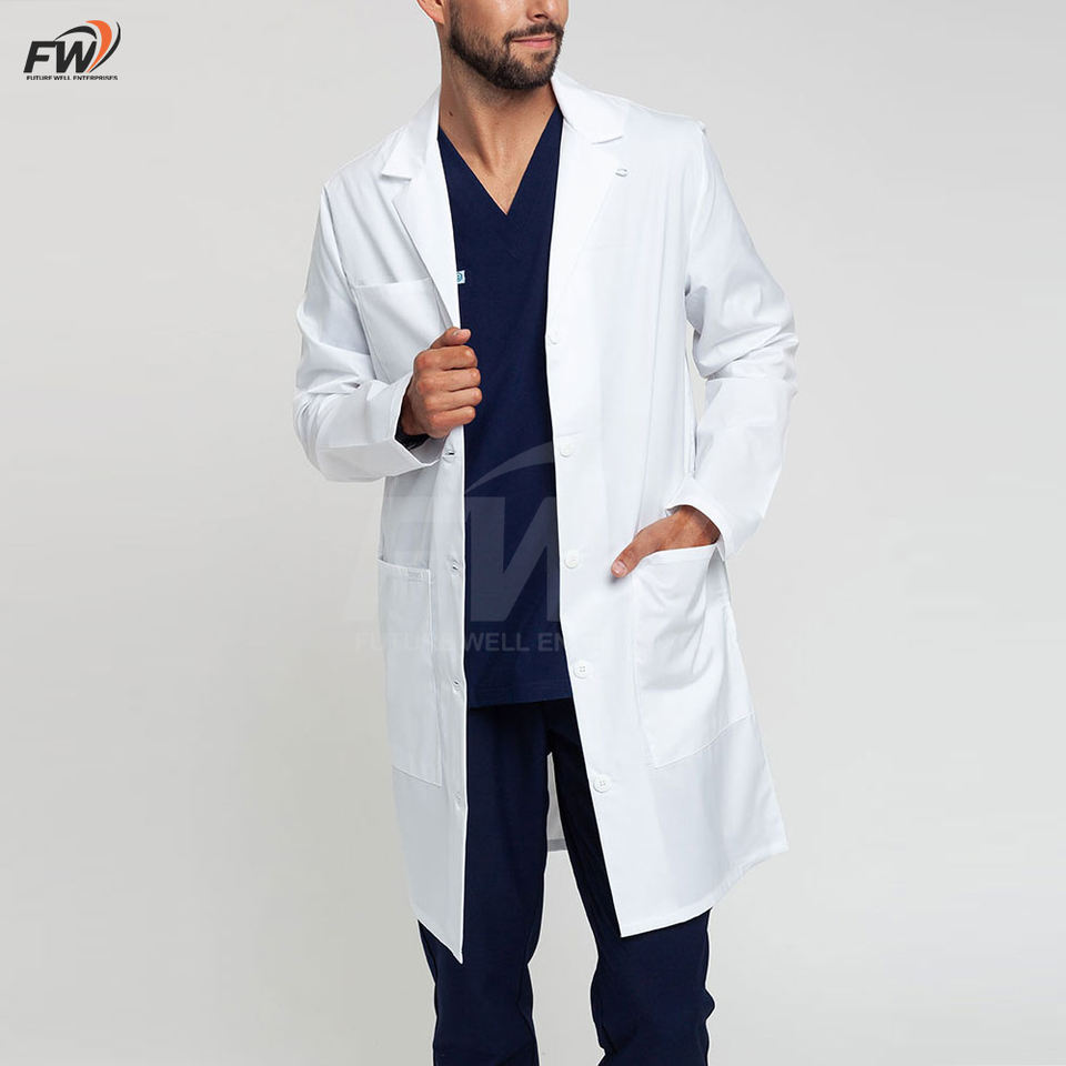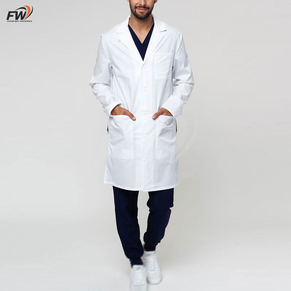 Bata de laboratorio protectora para manipulación de químicos, bata de laboratorio a medida para hombre, de manga larga, bata de ciencia unisex larga con solapa con muescas