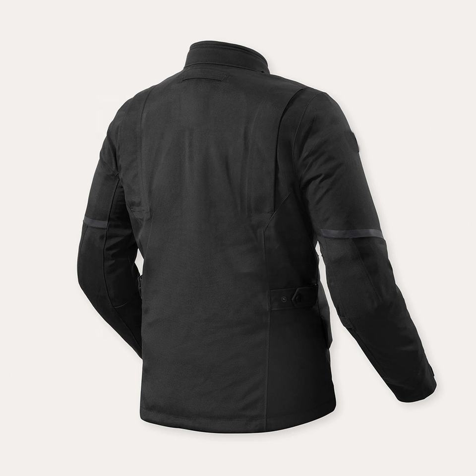 Chaqueta protectora de cuero textil para motocicleta con logotipo frontal de cuello levantado de lona, chaqueta acolchada transpirable de secado rápido para hombres