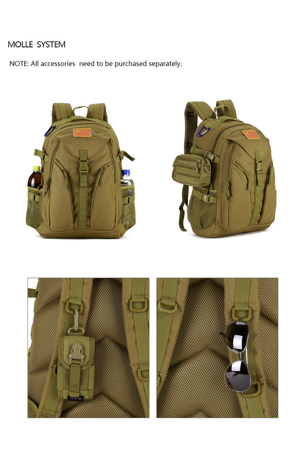 Impermeable, Resistente al agua, Ligero, Durable, Gran capacidad, Transpirable, Multifunción, Deporte, Sistema del Molle, Bolsillo lateral, Correa ajustable, Outdoor