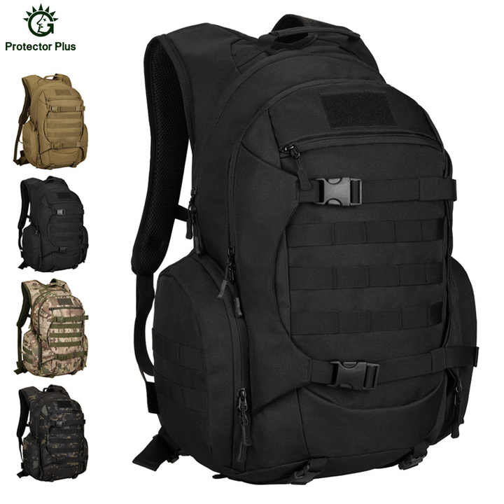Mochila Táctica Protector Plus para Deportes al Aire Libre, Senderismo y Caza, Negra, Oxford, Impermeable, para Hombre, 45 Litros, MOLLE, Supervivencia