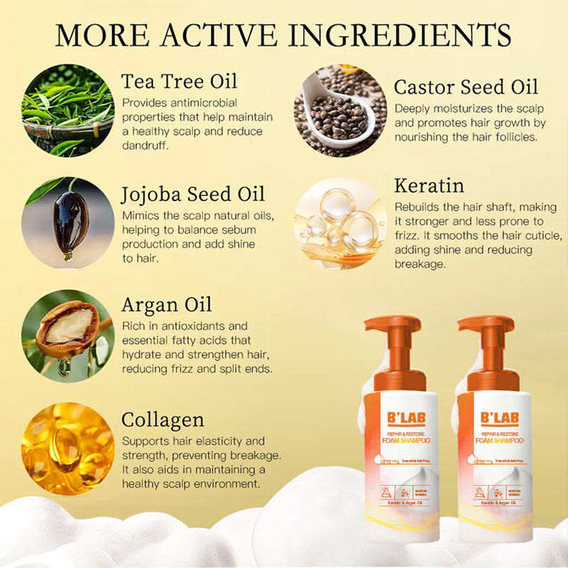 Champú espumoso de colágeno de proteína para reparar el cabello dañado, aceite de argán, queratina, colágeno, tratamiento capilar, champú de espuma para el cabello más fuerte