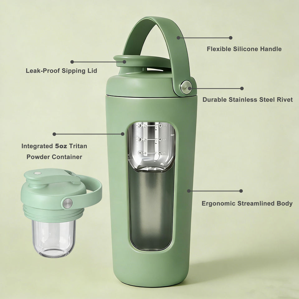 Set de Vasos Mezcladores de Proteínas de Doble Capa Tritan con Compartimento Portátil para Polvo, Recipiente de Acero Inoxidable 304
