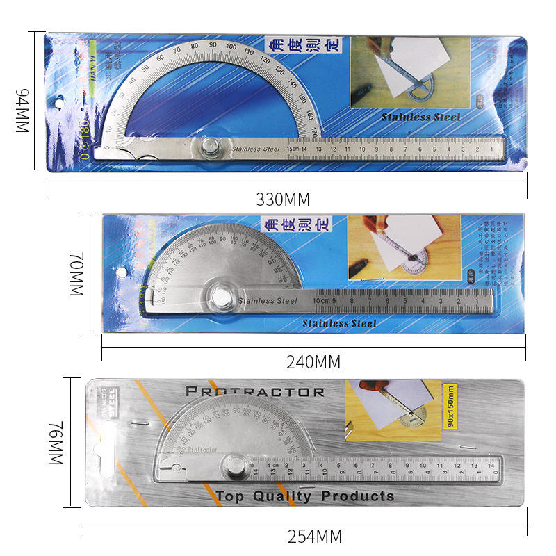 Regla de ángulo, transportador y medidor de ángulos de acero inoxidable, semicircular de 180 grados