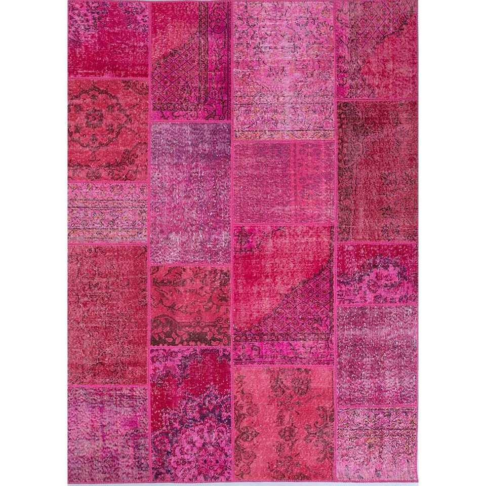 Alfombras de Lana Anudadas a Mano Provenance, Diseño Clásico de Parches Rosa y Morado para Decoración de Sala de Estar, Rectangulares de 9x12 Pulgadas para Pasillo