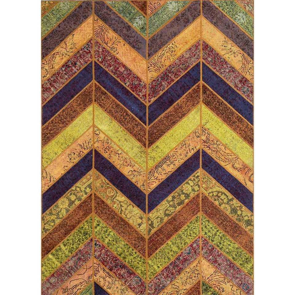 Alfombra de Lana Anudada a Mano de Gran Tamaño, Diseño Multi Chevron, para el Hogar, Pasillo, Sala de Estar, Rectangular, Hecha a Mano, Viscosa