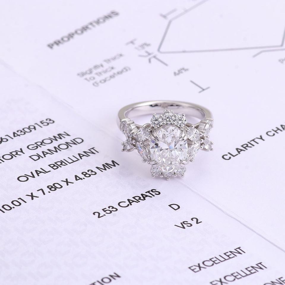 Anillo de Compromiso de Oro Blanco de 14K con Diamantes de Laboratorio de Lujo, Diamantes Creados en Laboratorio de 2.53 Quilates VS2 CVD, Joyería Fina de Provenza para Mujer