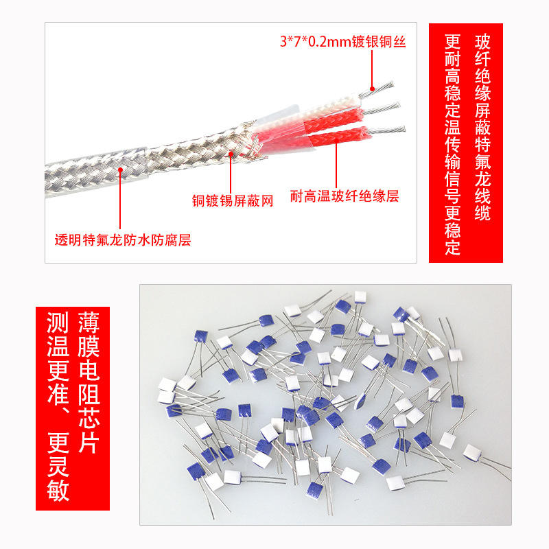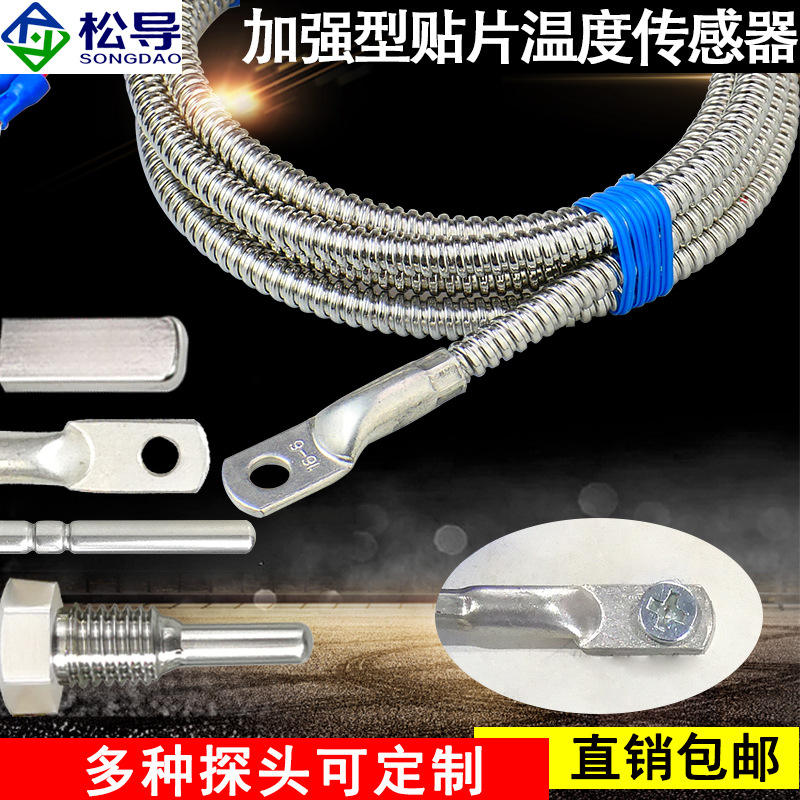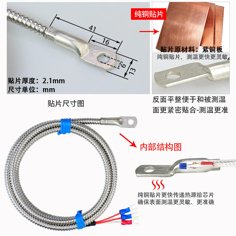 Sensor de temperatura Pt100 tipo parche, tubo metálico flexible, detector de temperatura por resistencia, punta prensada en frío, almohadilla de superficie.