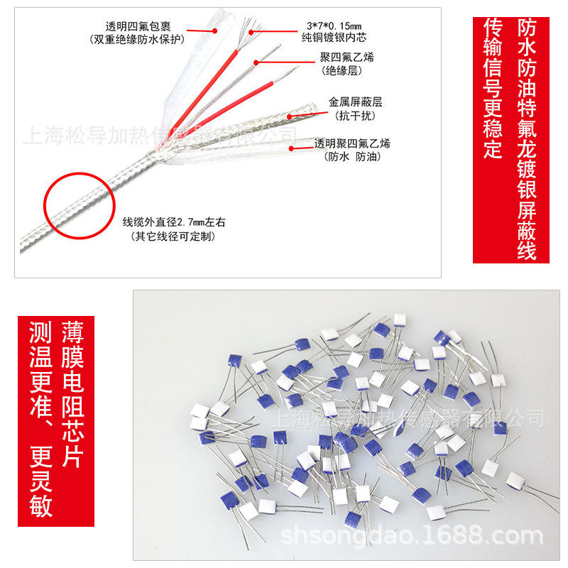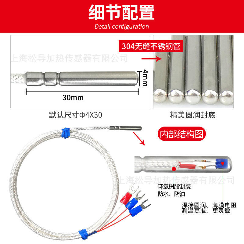 Sensor de temperatura Pt100, sonda de temperatura sellada en rollo, resistente al agua y al aceite, termopar de resistencia de platino.