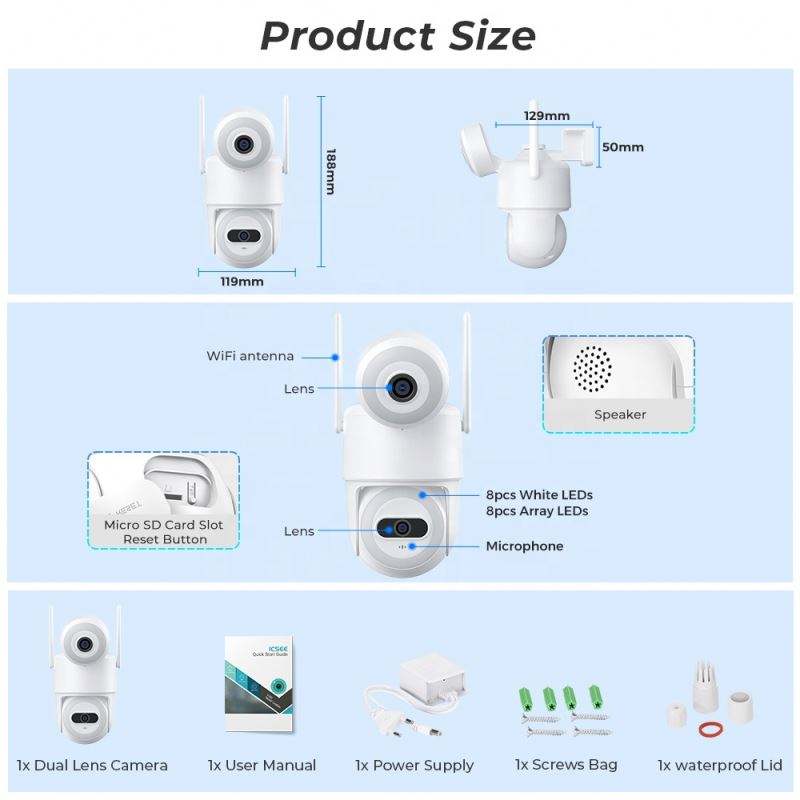 Humanos de seguimiento de movimiento, Visión nocturna, Detección de movimiento, Impermeable / a prueba de mal tiempo, PAN-TILT, De Audio de dos víasCaracterísticas especiales
