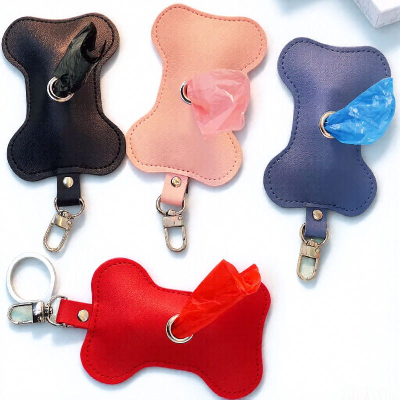 Bolsas de basura para mascotas de cuero Pu, bolsa para caca de perro, práctico dispensador de residuos en forma de hueso, novedoso organizador de residuos para mascotas, bolsa colgante, accesorios