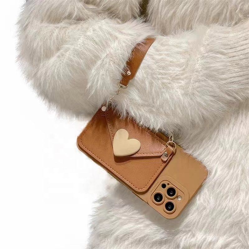 Funda de cuero PU para teléfono móvil, carcasa con correa, para iPhone 14, 13, 12, 11
