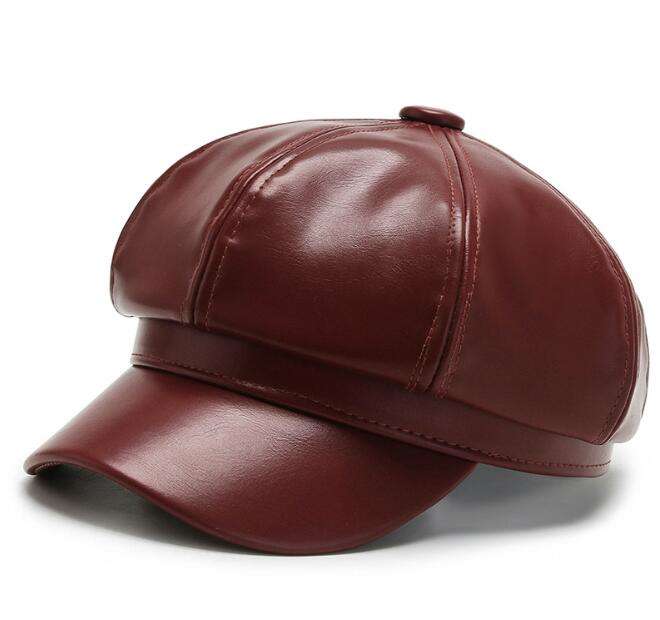 Gorra octogonal de PU, gorra Ivy, boina para mujer, venta al por mayor, calidad superior, clásica, económica, ajustable, de cuero, multicolor o personalizada