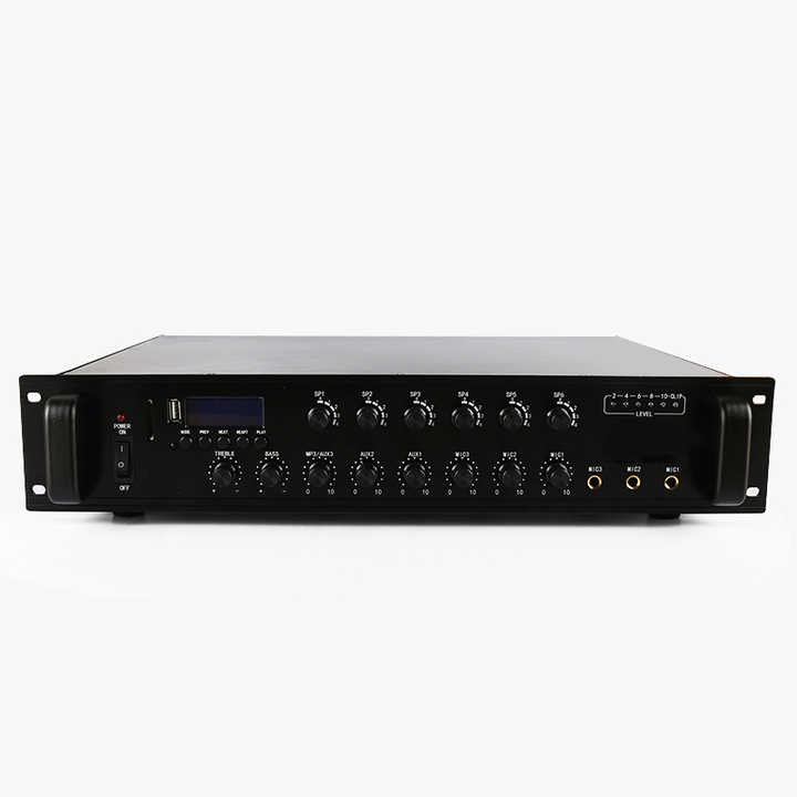 Sistema de audio público 3 Entrada de micrófono karaoke doméstico subwoofer estéreo bajo 6 zonas 180W amplificadores de audio profesionales