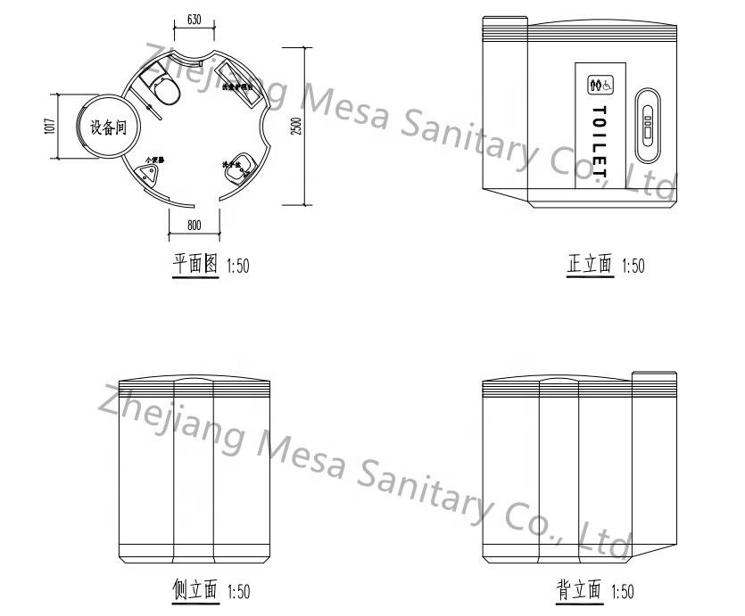 Wc público al aire libre Control inteligente Cabina de inodoro de ducha portátil y contenedor de Ducha