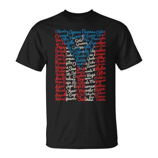 Camiseta retro vintage con bandera de Puerto Rico, ciudades y pueblos, unisex para adultos, 100% algodón