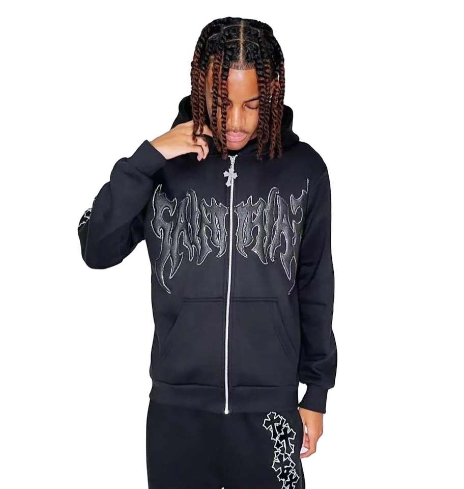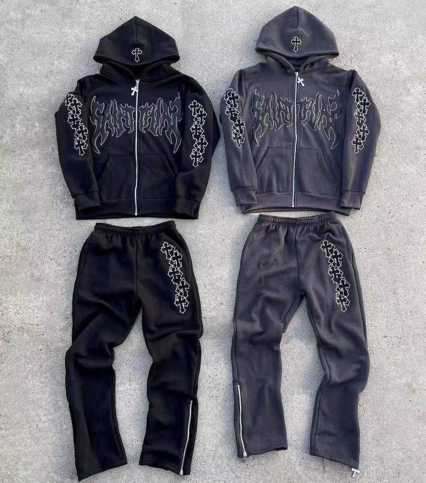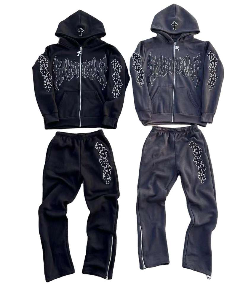 Puff estampado logotipo personalizado Flare Sweatsuit chándal 100% algodón crudo dobladillo con capucha acampanado pantalones de chándal hombres Sweatsuit