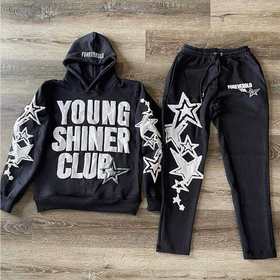 Conjunto de chándal apilado con estampado Puff, chándal acampanado de algodón/poliéster/Spandex transpirable personalizado de OSTROWEARS ENTERPRISES
