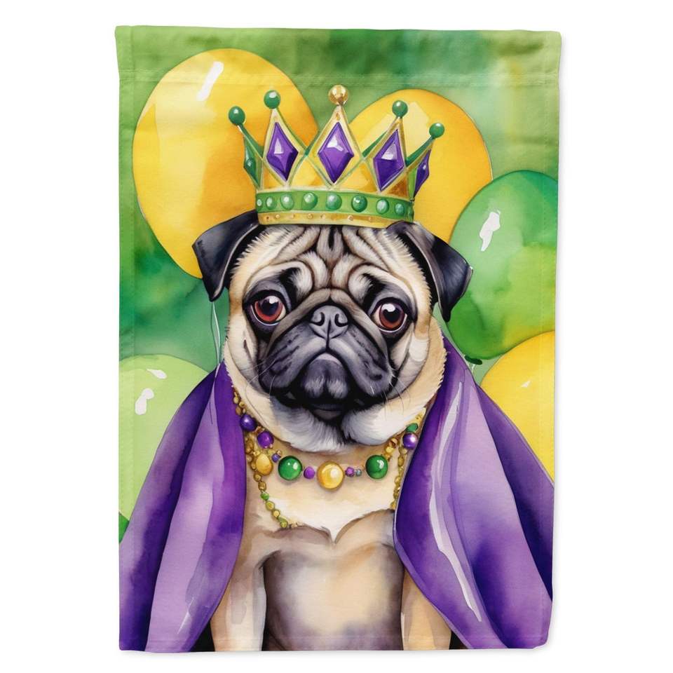 Pug King Mardi Gras Bandera de jardín multicolor Buzón Decorativo Patio Banner para Patio Obra DE ARTE Tamaño de camas de flores
