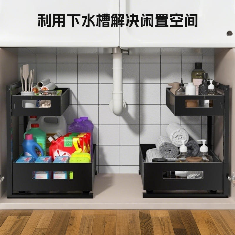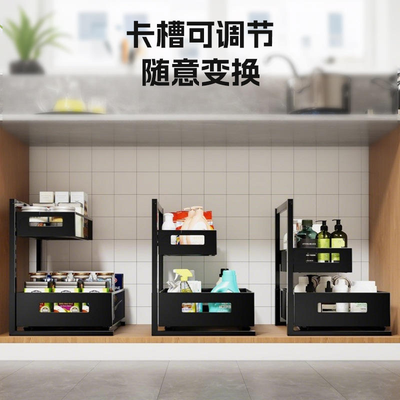 Estante de Almacenamiento Extraíble para Fregadero, Negro, 2 Niveles, Ajustable, para Encimera de Baño, para Utensilios de Cocina