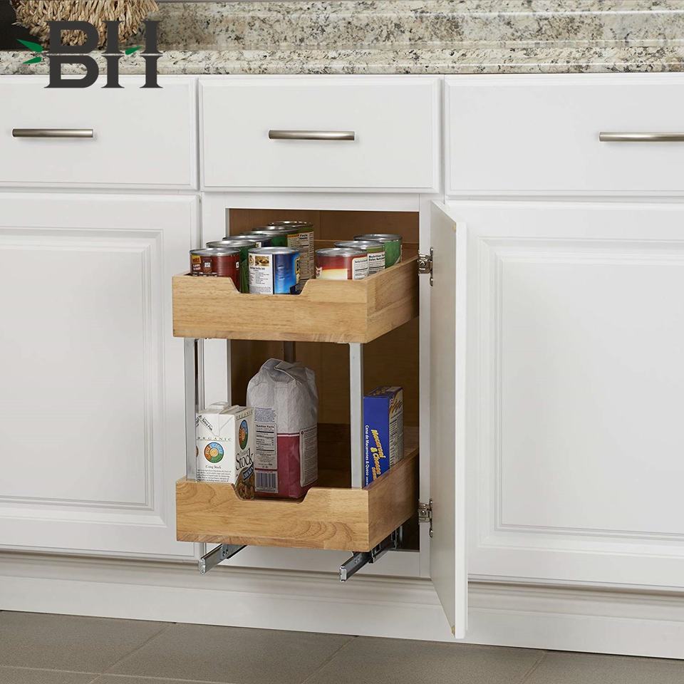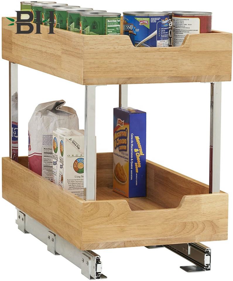 Estante de especias extraíble, organizador para gabinete de 2 ataduras, estantes de despensa deslizantes de bambú y almacenamiento de especias de cocina