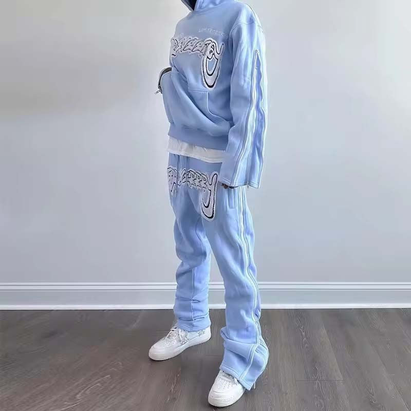 Sudadera con capucha Berat, Baju olahraga PRIA Sudadera con capucha berkobar Jogger uniseks, setelan celana olahraga Set Strip samping