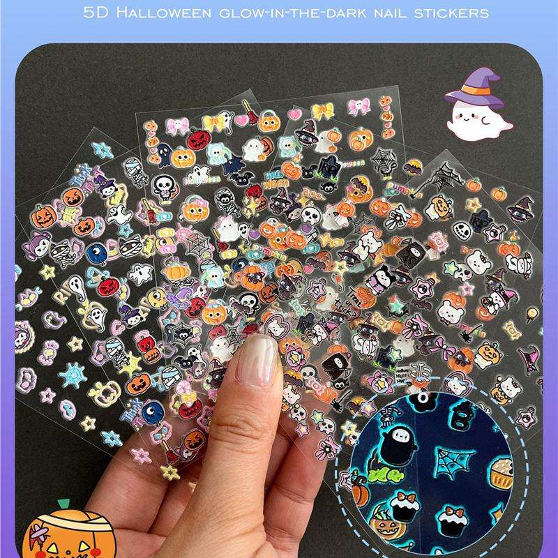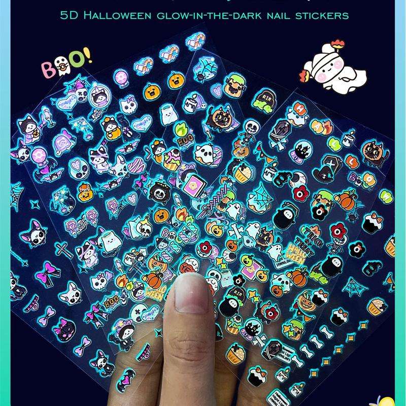 Calabaza Diversión 3D pegatinas luminosas para uñas Nuevas pegatinas de uñas para niños con fluorescencia de Halloween