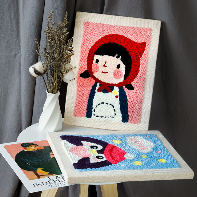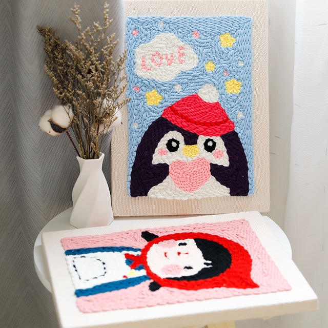 Kit de bordado de aguja de perforación, juego de aguja de perforación pluma de bordado mágica con tela, kits de punzón de aguja para principiantes