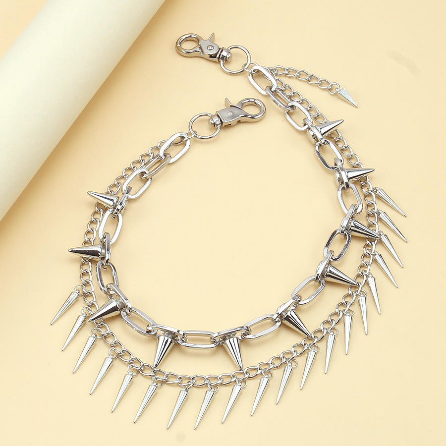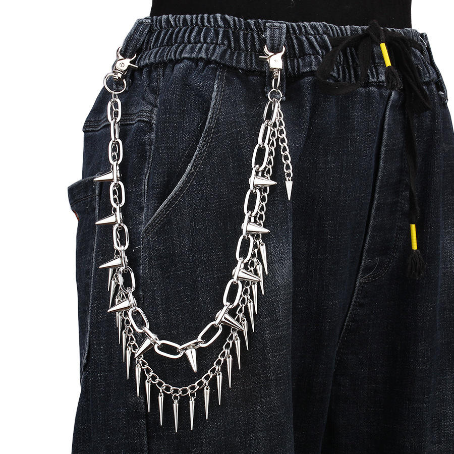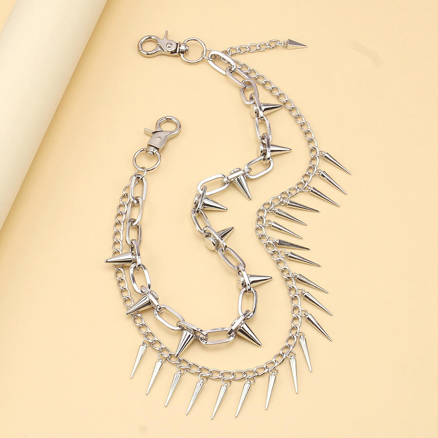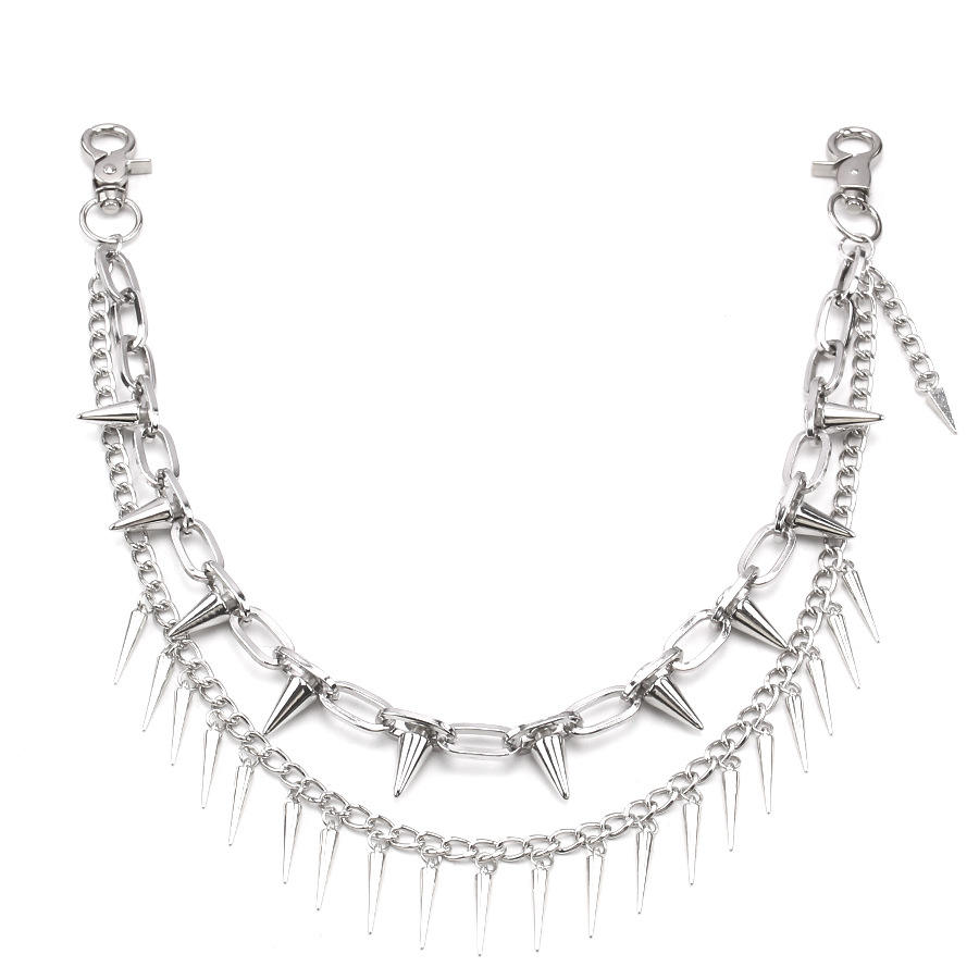 Cadena de cintura de doble capa con púas de metal estilo punk, cadena corporal de aleación de zinc, moda casual hip hop
