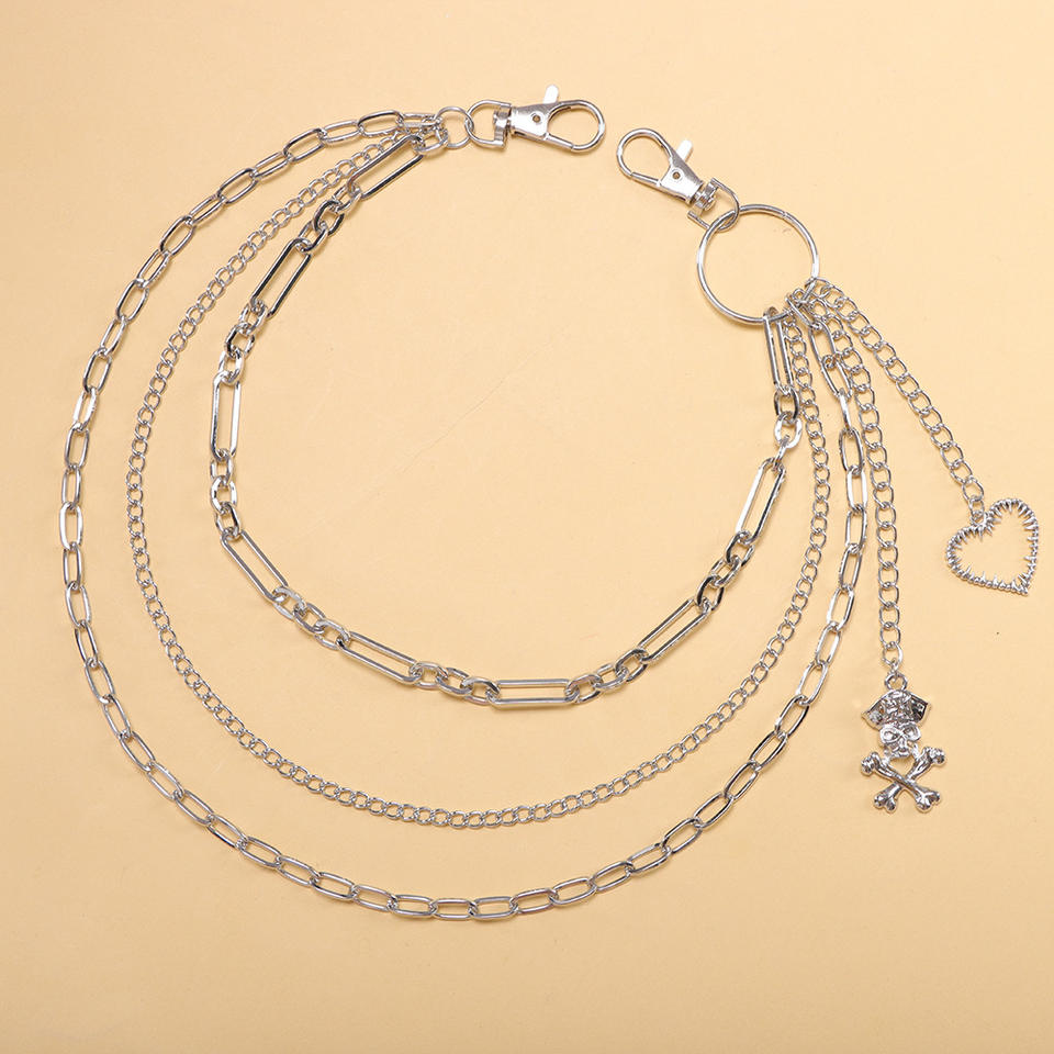 Cadena de cintura de metal punk multicapa con púas, corazón y calavera pirata, de aleación de zinc, estilo urbano, cadena corporal de moda para uso diario