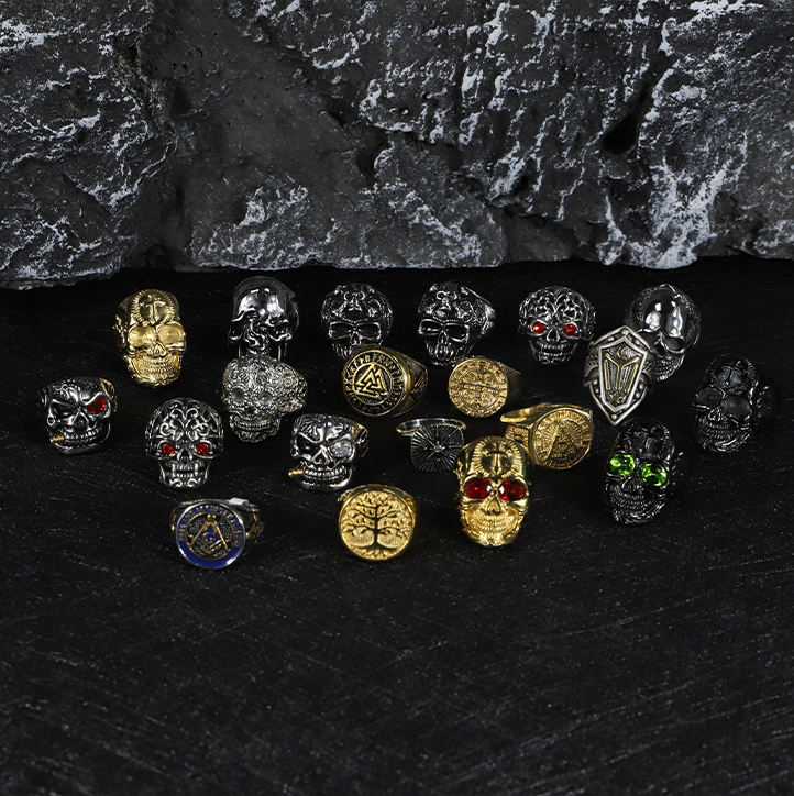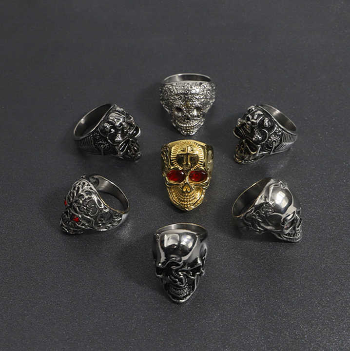 Punk motocicleta Retro personalidad estilo 316 Acero inoxidable calavera hombres anillo fuente fábrica precio al por mayor