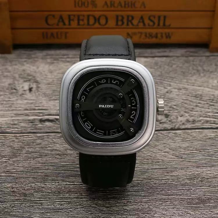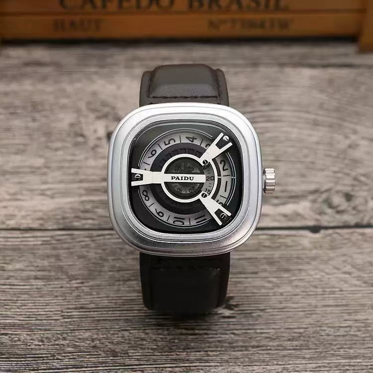 Estilo punk tocadiscos cuadrado reloj para niños Moda para hombres tocadiscos reloj de moda reloj de cuarzo con correa