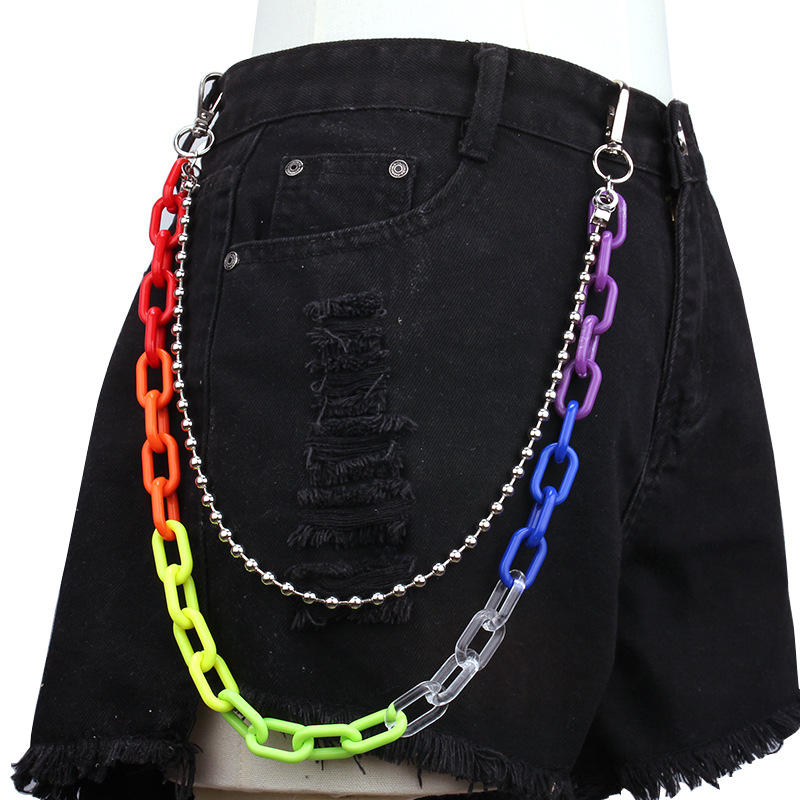 Cadena de cintura punk de siete colores, doble capa, con cuentas geométricas de plástico, para fiestas, a la moda.