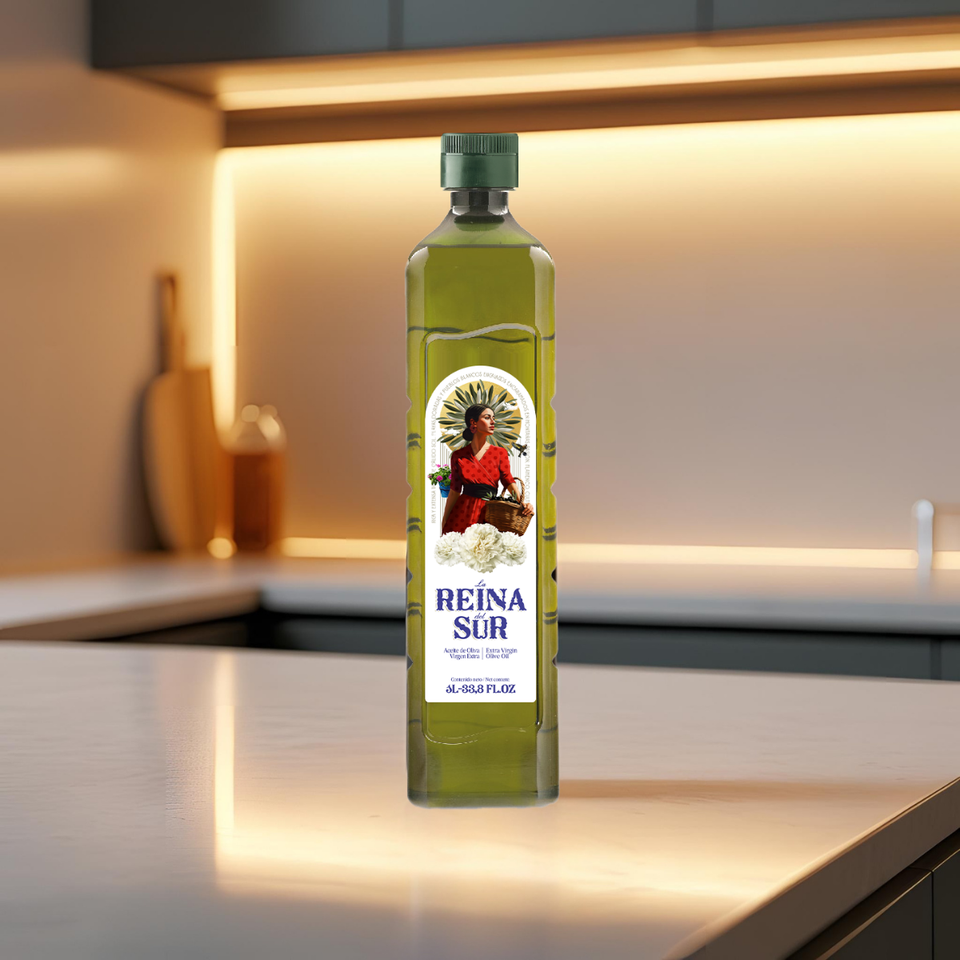 Aceite de oliva cuadrado puro PET 1L "La Reina Del Sur" para cocinar y freír aceite a base de plantas