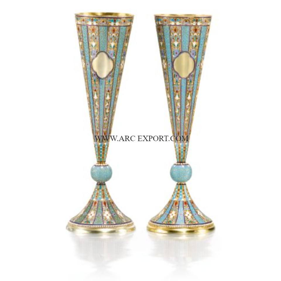 Juego de trompeta de decoración de artículos de mesa multicolores de latón puro de 2 artículos de fiesta redondos de diseñador estándar decoración Florero en la India