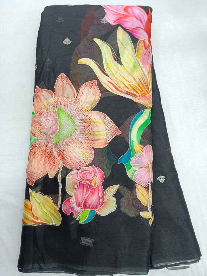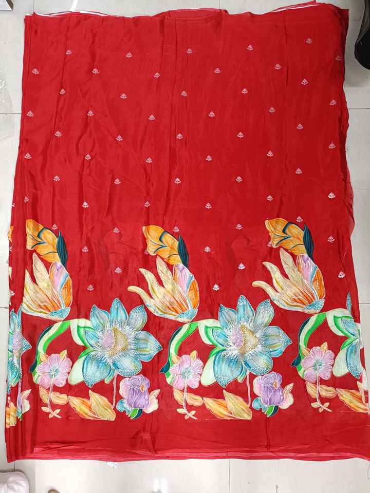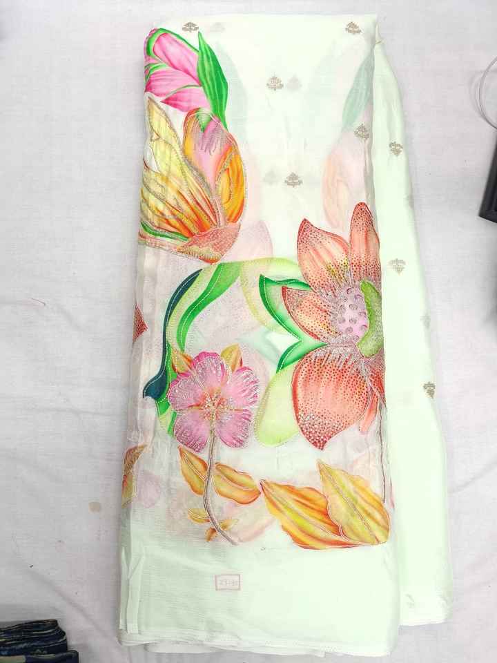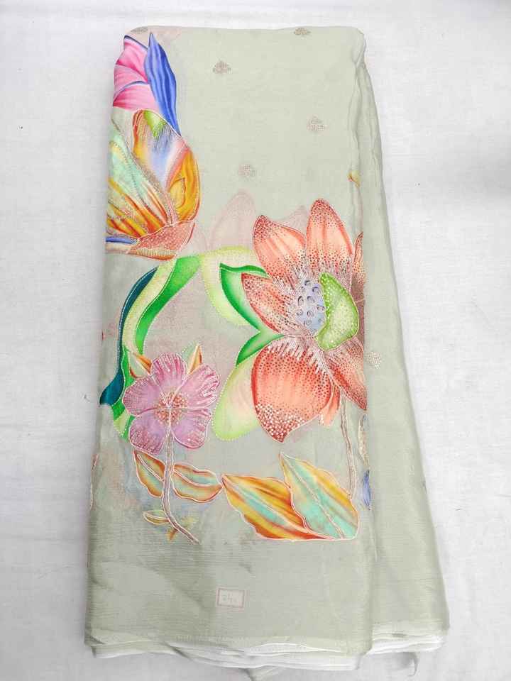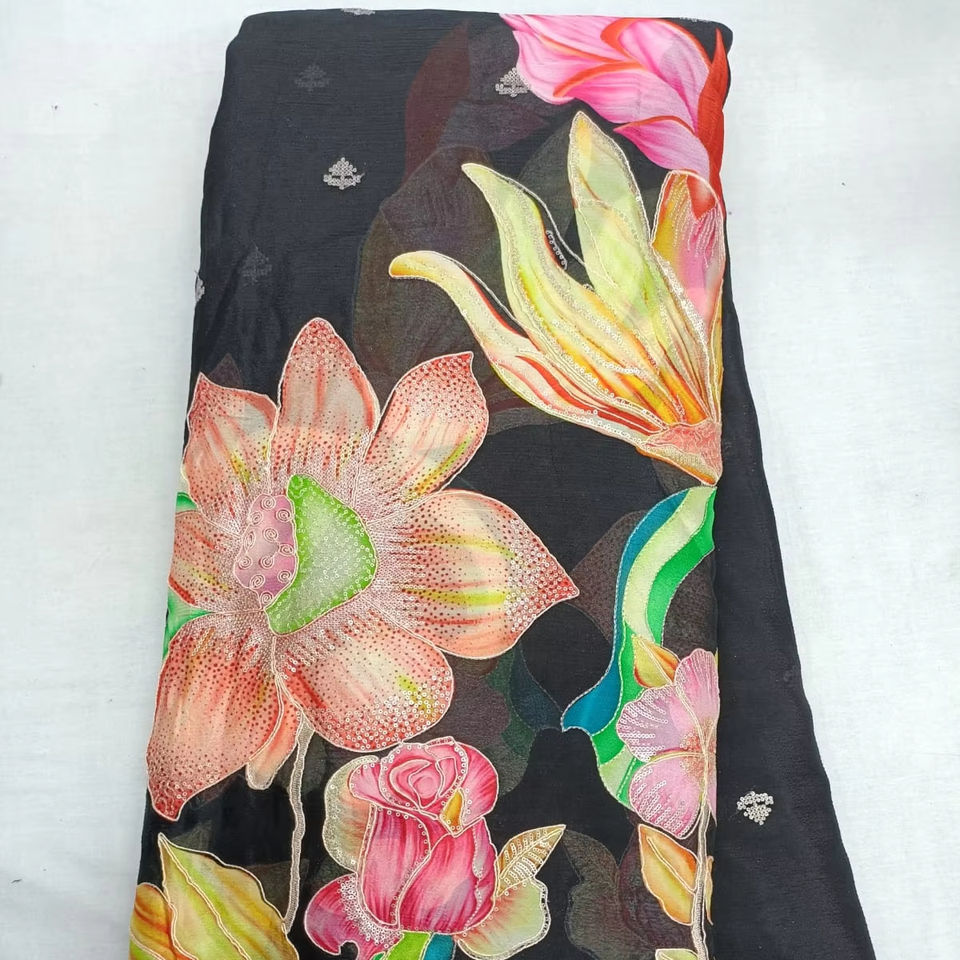 Pure Chinon Position Print Work Fabric 55 GSM 58 Inch Width Bada Panna Flower Embroidery Material for Luxury Designer Boutique